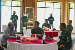 Pembahasan ringan mengenai geostrategi antara Anggota DPD RI Perwakilan Maluku Nono dan Pangdam XVI/Pattimura berlangsung di Aula Makodam setempat.