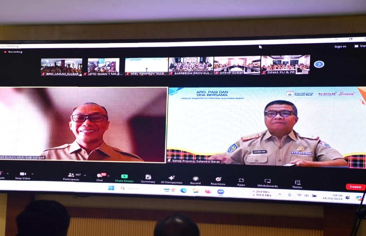 MAMUJU –PJ Gubernur Sulbar Prof. Zudan Arif Fakrulloh berharap Apel Pagi setiap hari Senin ke depan menggunakan model sharing, doa bersama secara zoom.