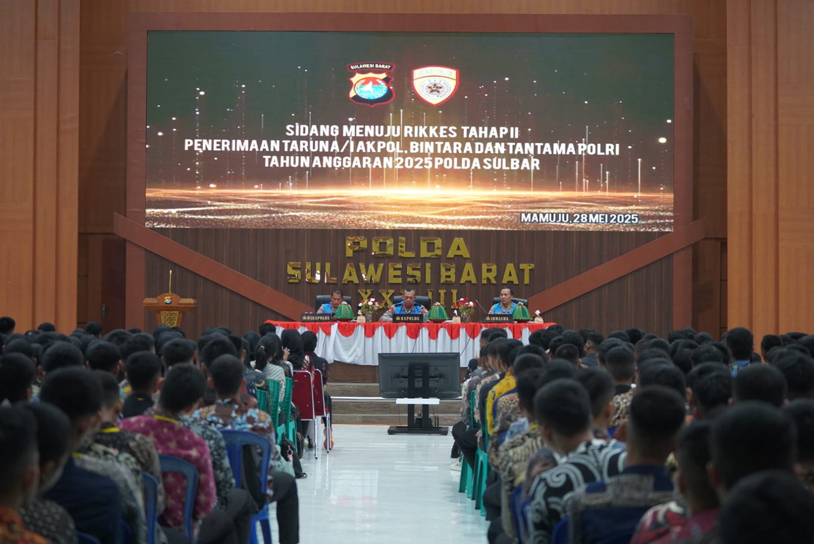 MAMUJJ– Ketegangan terasa membayangi 1.029 calon Taruna Akpol, Bintara dan Tamtama Polri yang tengah menunggu hasil sidang kelulusan menuju tes selanjutnya. Wajah-wajah cemas terpancar jelas saat mereka menyaksikan pengumuman hasil seleksi akademis dan psikotes yang menentukan kelanjutan perjalanan mereka menuju Rikkes Tahap II.