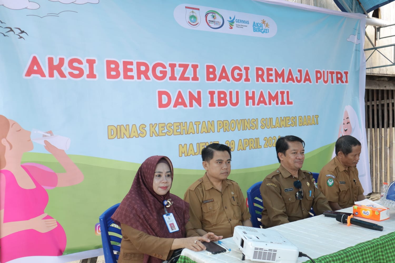 MAJENE – Dinas Kesehatan Provinsi Sulawesi Barat (Dinkes Sulbar) menggelar kegiatan aksi bergizi di Kabupaten Majene, tepatnya di Kelurahan Baurung, Kecamatan Banggae Timur. Acara ini dihadiri oleh Kepala Dinas Kesehatan Provinsi Sulawesi Barat, Asran Masdy, Kepala Dinas Kesehatan Kabupaten Majene, Rahmat, dan Kepala Bidang Kesehatan Masyarakat Dinkes Provinsi Sulawesi Barat, Muh Ihwan.