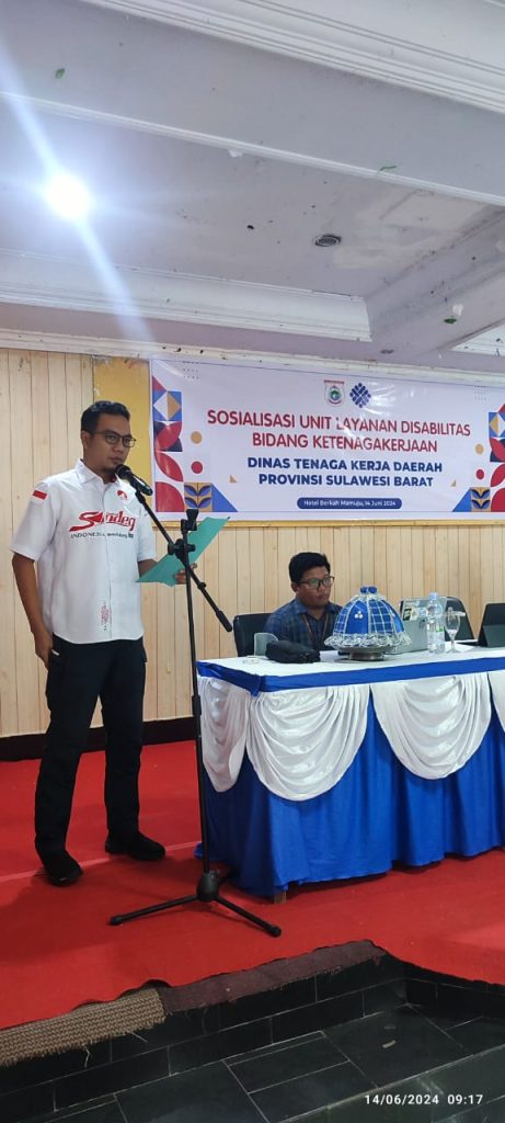 MAMUJU – Kepala Dinas Tenaga Kerja Provinsi Sulawesi Barat secara resmi membuka kegiatan Sosialisasi Unit Layanan Disabilitas Bidang Ketenagakerjaan di Hotel Berkah Mamuju jumat 14 juni 2024 Acara ini bertujuan untuk memberikan akses yang lebih baik bagi individu dengan disabilitas dalam mencapai kesempatan kerja yang layak dan sesuai dengan potensi mereka.