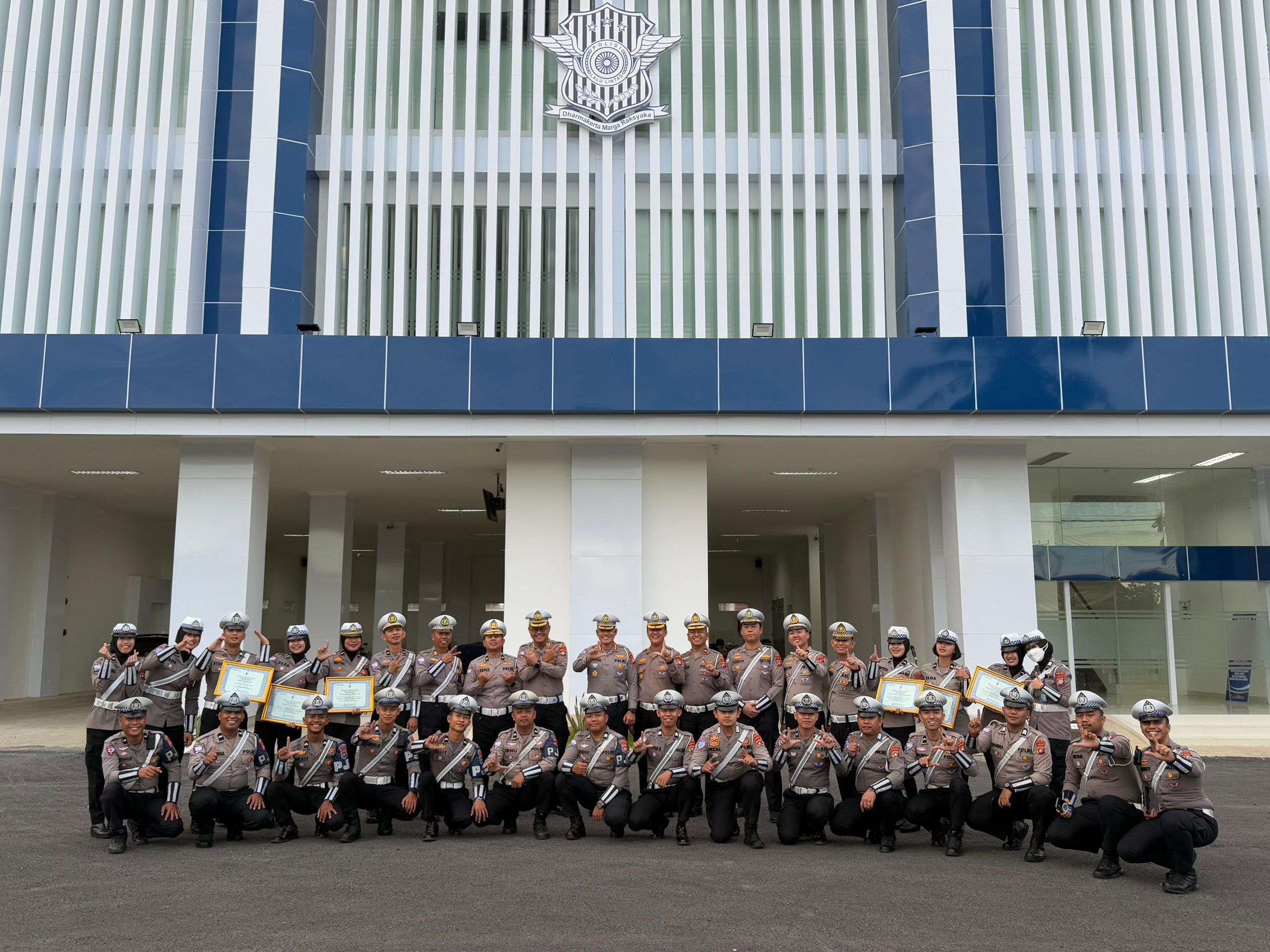 Dengan penuh Kebanggan Dirlantas nampak menyerahkan sertifikat penghargaan kepada para personel yang berprestasi. “Terimakasih ya atas dedikasi dan kerja keras kalian, tetap semangat untuk berikan pelayanan terbaik kepada masyarakat,” tutur Dirlantas Lantas.