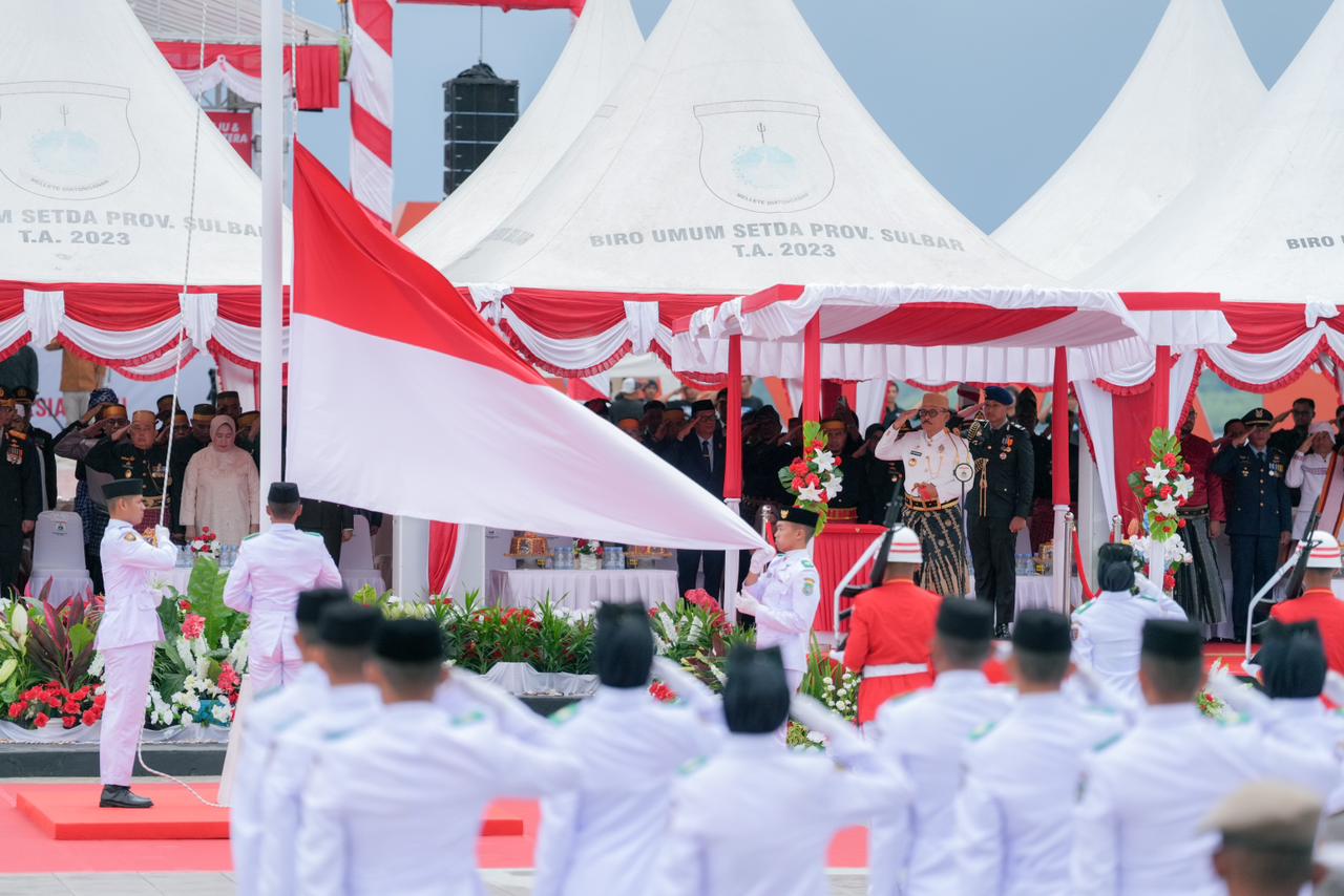 Mamuju – Pasukan Pengibar Bendera Pusaka (Paskibraka) Provinsi Sulawesi Barat sukses melaksanakan tugasnya dalam Upacara peringatan HUT RI ke-80 tingkat Provinsi Sulbar, baik saat pengibaran maupun penurunan bendera Merah Putih di Anjungan Pantai Manakarra, Minggu 17 Agustus 2025.