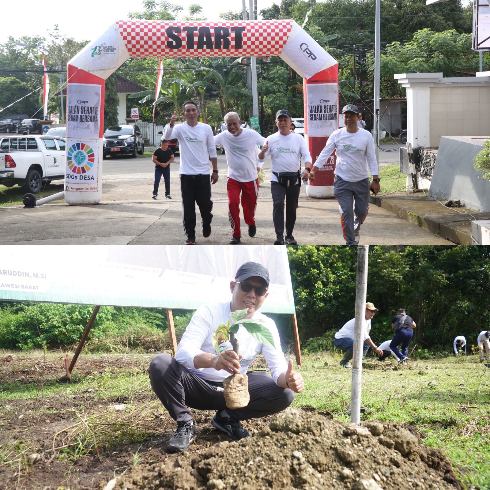 Terlihat Kepala Bapperida Sulbar, Baik Pj. Bahtiar bersama Ketua DPRD Sulbar, Sekda Provinsi Sulbar dan forkopimda serta pejabat Pemprov Sulbar lainnya kompak mengenakan kaos seragam warna putih “Gerakan Menanam Pohon”. Hal itu sebagai bentuk kebersamaan peduli lingkungan di Sulbar.