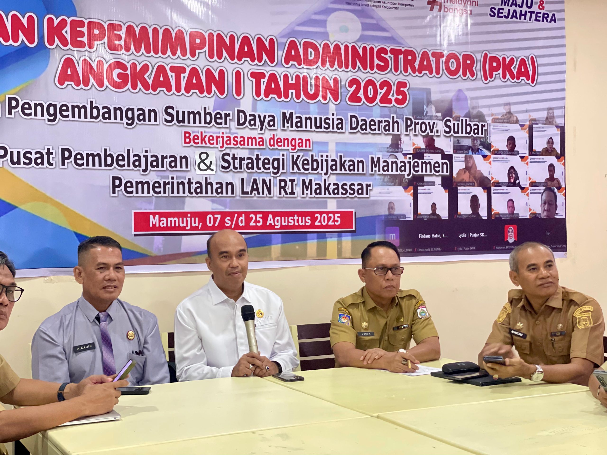 Dalam kegiatan yang dilaksanakan oleh Badan Pengembangan Sumber Daya Manusia Daerah Sulbar, Junda Maulana menguji sebanyak 10 peserta PKA Angkatan I Tahun 2025 yang diutus dari berbagai Perangkat Daerah Provinsi Sulawesi Barat.