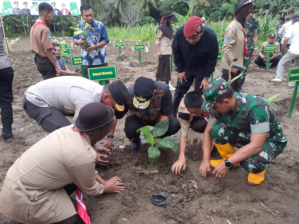 Dandim 1418/Mamuju Letkol Inf Andik Siswanto S.I.P., M.I.Pol, melakukan penanaman pohon Pisang Cavendish dan pohon sukun bersama Pj. Gubernur Sulbar, Danrem 142/Tatag beserta Forkopimda Sulbar dan Forkopimda Kab. Mamuju
