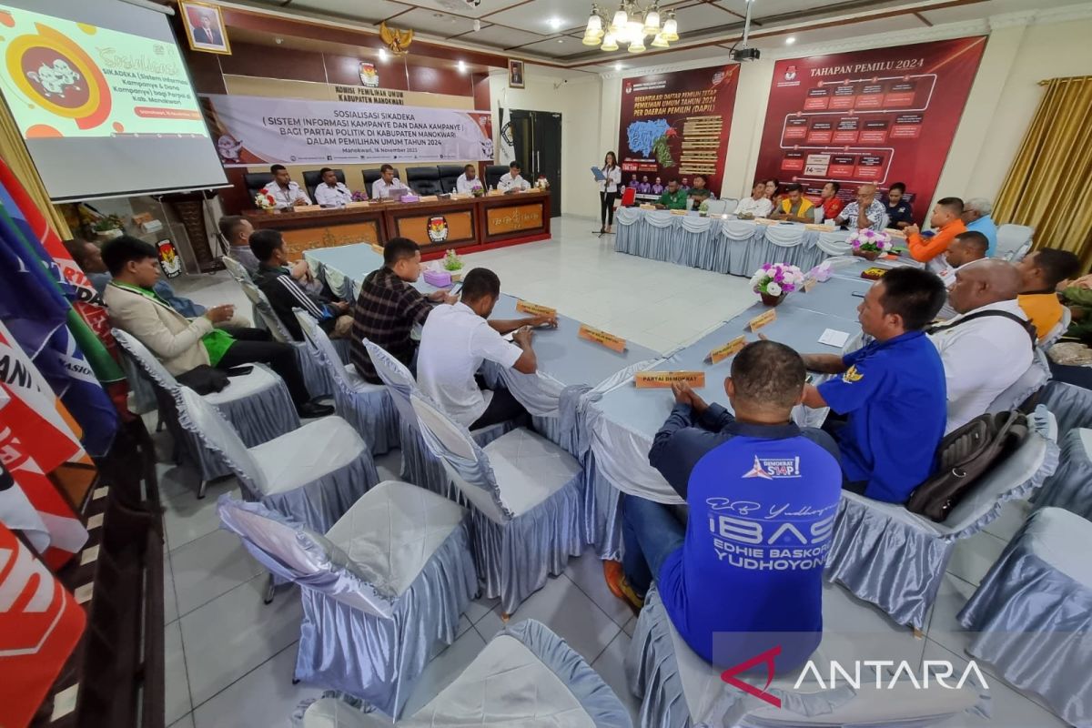 Manokwari (ANTARA) – Komisi Pemilihan Umum (KPU) Kabupaten Manokwari, Provinsi Papua Barat sosialisasikan aplikasi informasi kampanye dan dana kampanye (Sikadeka) pada partai politik jelang masa kampanye pemilu 2024.