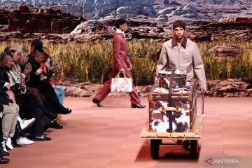 Model menampilkan koleksi busana pria Fall-Winter 2024/2025 dari desainer Pharrell Williams untuk Louis Vuitton dalam ajang Men’s Fashion Week di Paris, Prancis, Selasa (16/1/2024). ANTARA FOTO/REUTERS/Stephanie Lecocq/foc.