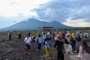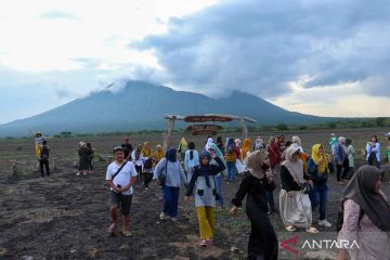Wisatawan menikmati suasana savana Bekol di Taman Nasional Baluran, Situbondo, Jawa Timur, Minggu (18/2/2024). TN Baluran kembali dibuka untuk wisatawan setelah sebelumnya ditutup selama satu bulan untuk pemulihan kawasan Wisata serta peningkatan pelayanan. ANTARA FOTO/Budi Candra Setya/nym.