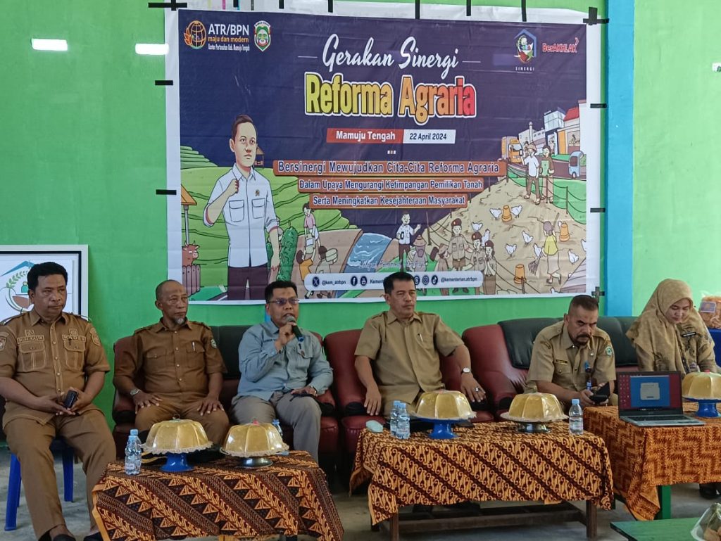 MATENG – Bertempat di Desa Pangale | Senin 22 April 2024 telah dilaksanakan Gerakan Sinergi Reforma Agraria (GSRA) bersama dengan Pemerintah Daerah Kab. Mamuju Tengah serta Para OPD lintas sektor lingkup Kab. Mamuju Tengah, Pemerintah Desa Pangale dan para Pelaku usaha subjek Reforma Agraria