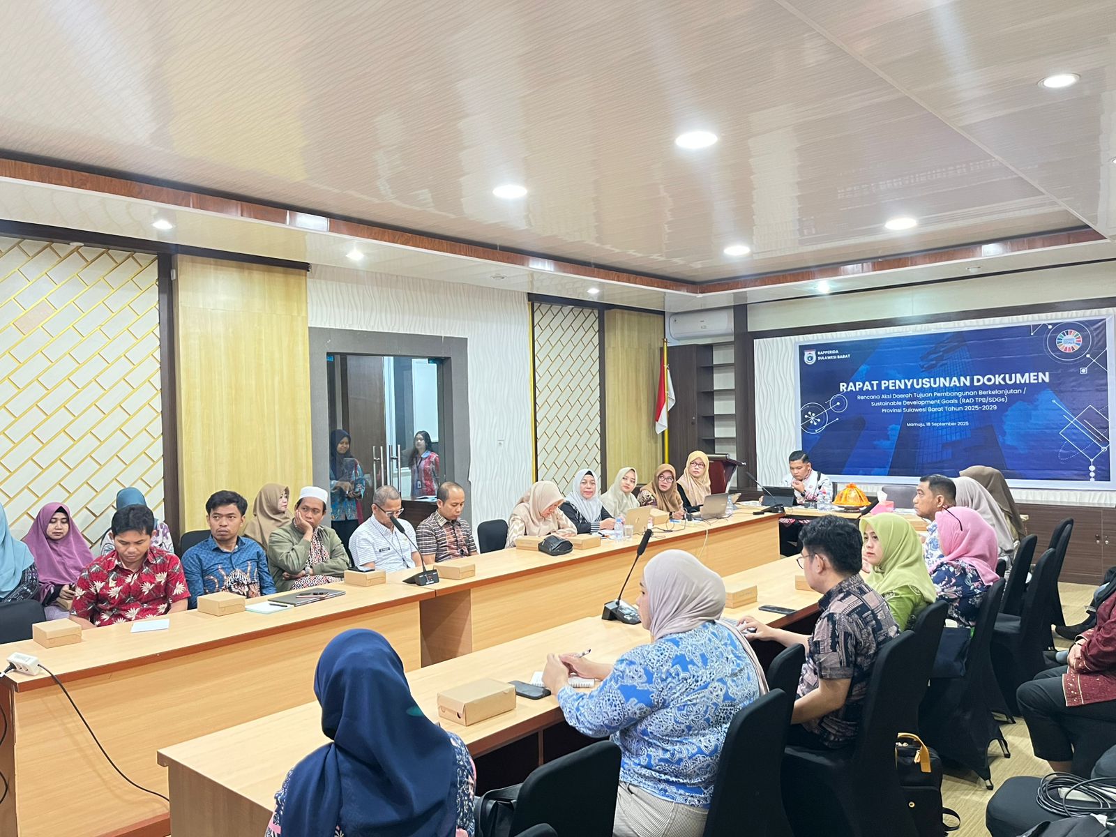 Mamuju – Pemprov Sulbar melalui Badan Perencanaan Pembangunan, Riset, dan Inovasi Daerah (Bapperida) menggelar rapat penyusunan dokumen Rencana Aksi Daerah Tujuan Pembangunan Berkelanjutan (RAD SDGs) tahun 2025–2029, Kamis, 18 September 2025.