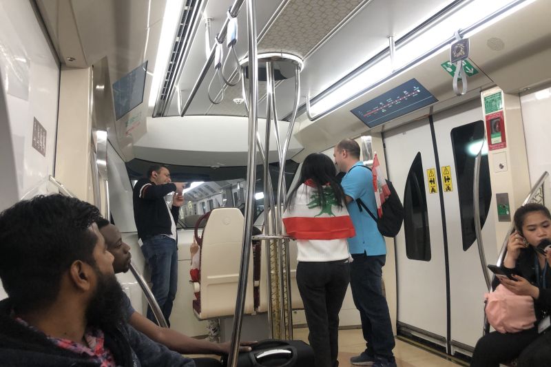 Doha (ANTARA) – Jaringan kereta bawah tanah Metro Doha, Qatar, dipadati oleh para pendukung timnas sepak bola Lebanon untuk menuju Stadion Lusail, Jumat.