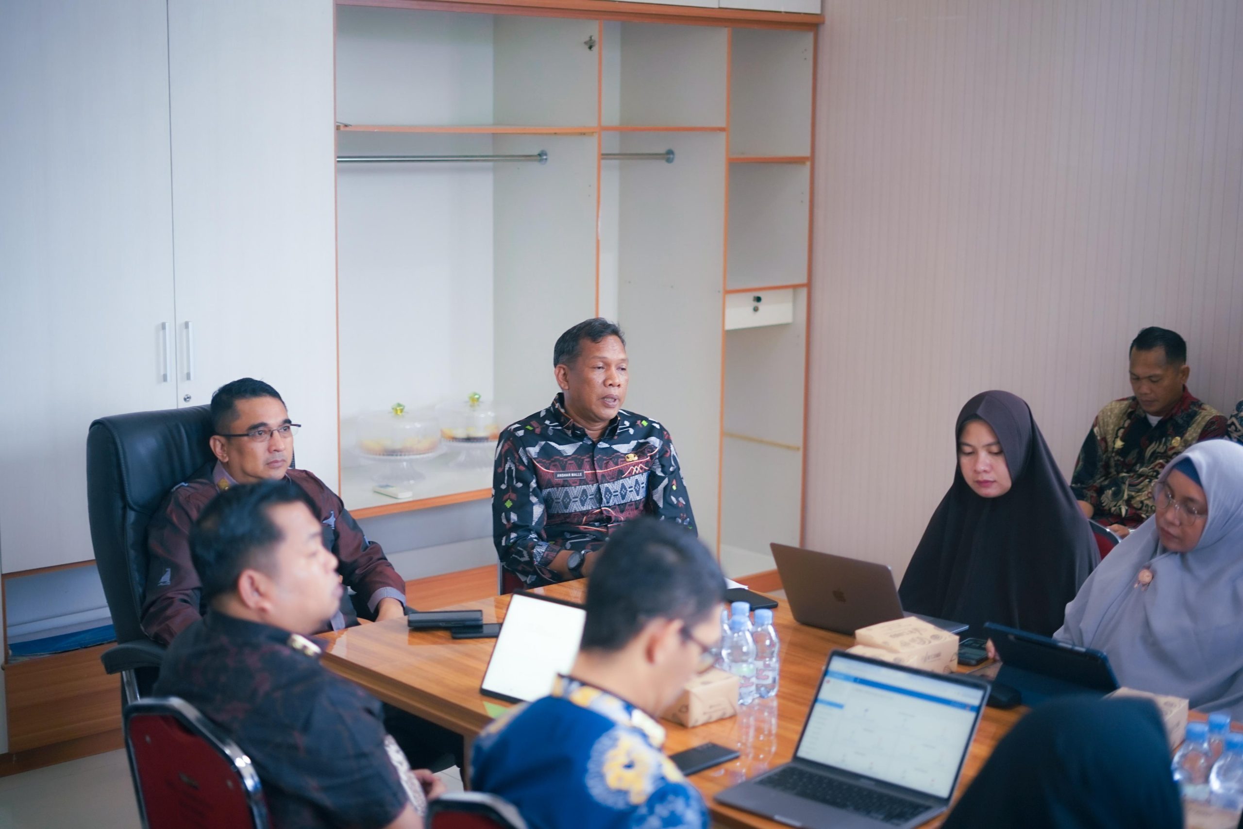 Asisten Administrasi Umum, Drs. Amujib, MM dan Kepala Biro Umum Anshar Malle pun rapat bersama.