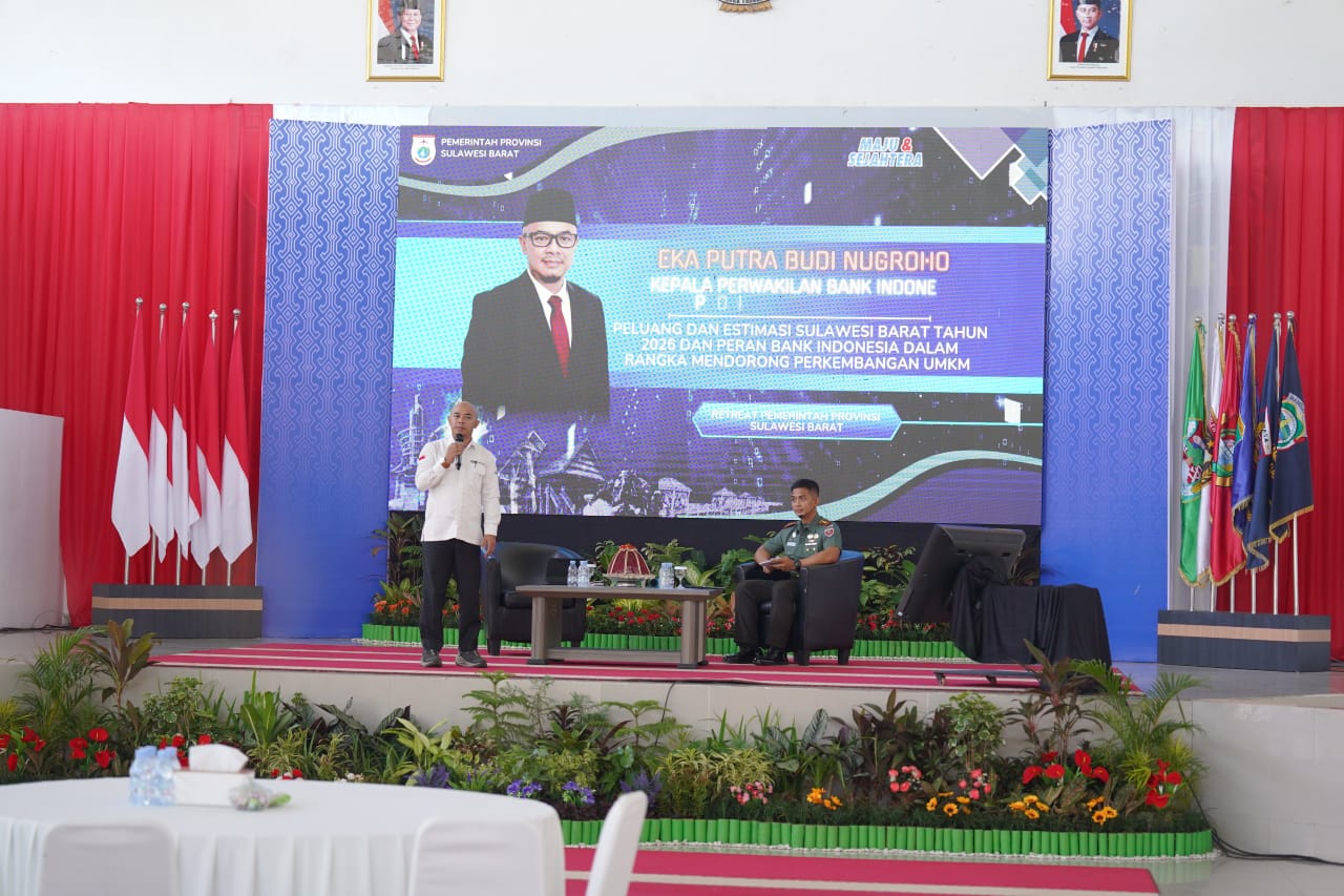 Dalam pemaparannya, Eka Putra Budi Nugroho menyoroti lima pokok utama: perkembangan ekonomi global dan nasional, kondisi ekonomi serta inflasi Sulbar, stabilitas sistem keuangan daerah, potensi sektor unggulan Sulawesi Barat, serta upaya Bank Indonesia dalam mendukung pertumbuhan ekonomi di daerah.
