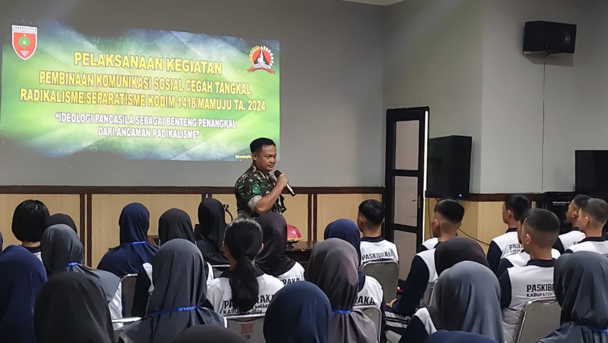 Selanjutnya Dandim 1418/Mamuju menyampaikan Paparan Wawasan Kebangsaan Bela Negara kepada 71 orang Paskibraka, yang intinya Bela Negara adalah Tekad, sikap dan perilaku, serta tindakan warga negara, baik secara perseorangan maupun kolektif dalam menjaga kedaulatan Negara, keutuhan wilayah, dan keselamatan bangsa dan negara, yang dijiwai oleh kecintaannya kepada NKRI yang berdasarkan Pancasila & UUD 1945 dalam menjamin kelangsungan hidup bangsa dan negara dari ancaman.