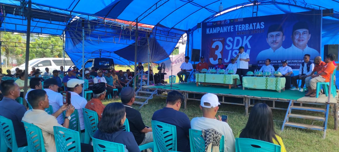 MATENG – Pasangan calon Gubernur dan Wakil Gubernur Sulawesi Barat, Dr. H. Suhardi Duka, MM (SDK) dan Mayjen (Purn) Salim Mengga (JSM), yang diusung oleh Koalisi Sulbar Maju dengan nomor urut 3, melanjutkan kampanye terbatas di Desa Batuparugi, Kecamatan Tobadak, Kabupaten Mamuju Tengah.