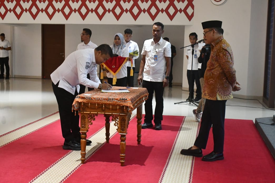 Mamuju – Para Pimpinan Organisasi Perangkat Daerah (OPD) Lingkup Pemprov Sulbar melakukan Penandatanganan Pakta Integritas dan Perjanjian Kinerja Pejabat Pimpinan Tinggi Pratama dihadapan langsung Gubernur Sulbar, Suhardi Duka, berlangsung di Ballroom Andi Depu Lantai 3 Kantor Gubernur Sulbar, Rabu, 16 Juli 2025 malam.