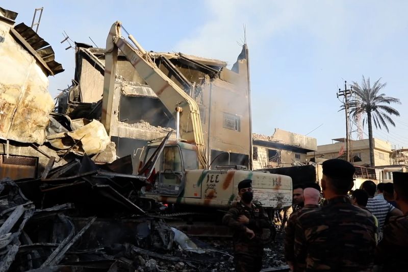 ANTARA – Kebakaran terjadi di sebuah bangunan tiga lantai berisi gudang-gudang penyimpanan parfum yang mudah terbakar di kawasan industri al-Waziriyah, Baghdad, Irak pada Minggu (6/11). Tim penyelamat pada Senin (7/11) terus mencari 11 orang hilang yang diyakini terkubur di antara puing-puing sebuah bangunan yang dilalap api. (XINHUA/Amita Putri Caesaria/Yovita Amalia/Amita Putri Caesaria)